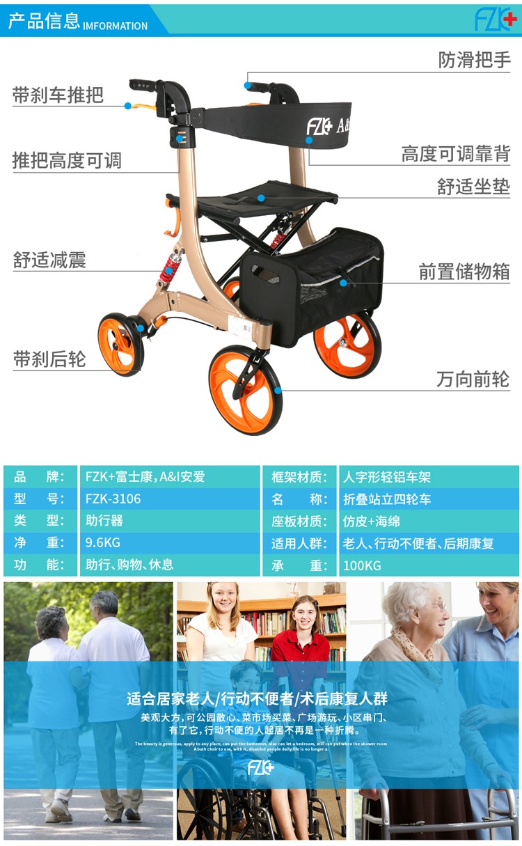 FZK-3106 折疊站立四輪車(減震款)