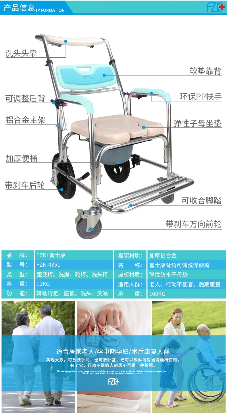 FZK-4351 鋁合金半躺便椅