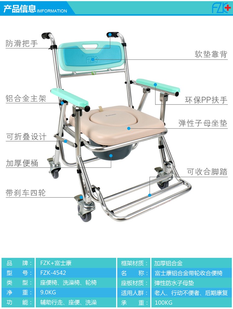 FZK-4542 ALUMINUM FOLDING COMMODE CHAIR